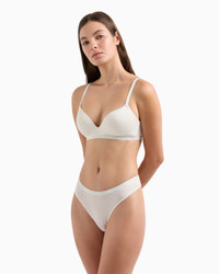 Padded triangle bra with adjustable shoulder straps. Certified organic viscose fabric made from organically farmed natural fibres grown using techniques that meet strict social and environmental criteria. Padded triangle Adjustable shoulder straps Logo trim Closure hooks Product Code: EW000442AF10889U1131