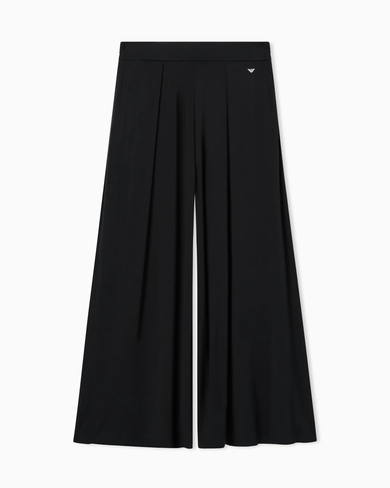 Loose-fit trousers with an elasticated waistband, front godet pleats and a micro eagle with a lurex effect that adds a touch of light. A practical and comfortable piece that lends itself to loungewear use. Fabric: 95% viscose from responsible forestry Loose fit Elasticated waist Godet pleats Micro eagle Product Code: EW000522AF19024UC001