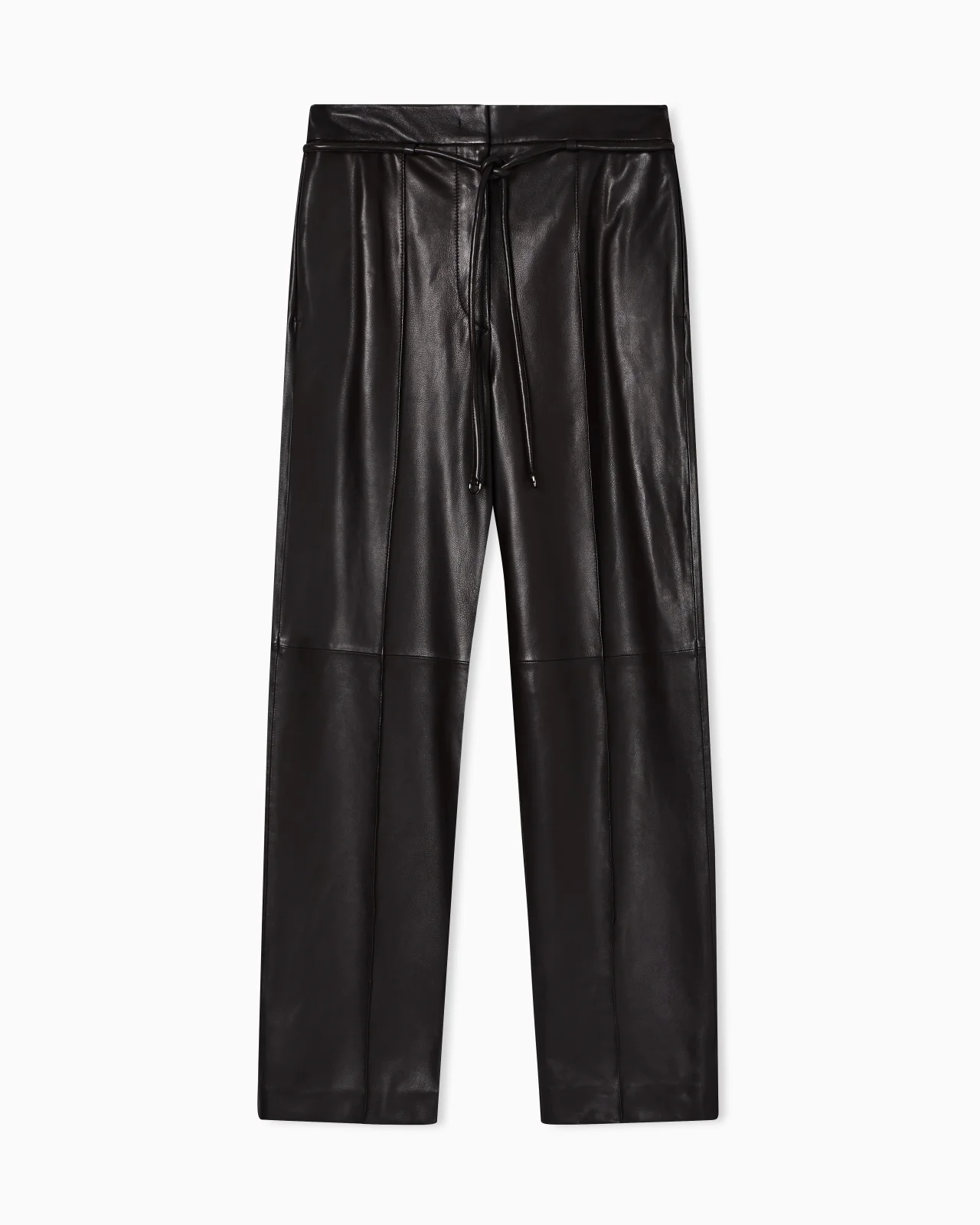 Trousers embellished with front ribs. The exclusive lambskin nappa leather has undergone a treatment similar to that historically used in traditional Neapolitan glove making, creating a leather divinely smooth to the touch. Material: 100% lamb leather from responsible tanneries Regular fit Glove-quality nappa leather Front hook-and-zip closure Tubular leather waist belt Front ribs Side pockets Back welt pockets Stretch-serge lining Product Code: EW003918AF22815U6030