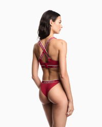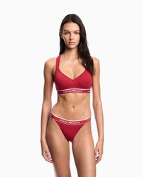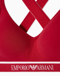 Padded bralette with elasticated logo trim and crossover logo shoulder straps at the back. The fabric is an organic cotton made from organically grown fibres. Fabric: 95% organically grown cotton Bralette Internal padding Crossover shoulder straps with logo Elasticated logo trim Closure hooks Product Code: EW000447AF15345U5075