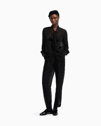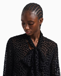 Shirt with tie flaps that create a signature foulard collar. This piece is made of tulle with a devore velvet collection pattern. The intriguing world of playing cards is the theme running through this season’s women’s collection. The Jeu de Cartes theme is playfully interpreted in different details of the collection: the elegance and refinement of Emporio Armani intertwine with the classic symbols of the playing-card suits, to create looks with a mysterious and sophisticated allure. Main fabric: 59% viscose from responsible forestry Tulle Velvet Devore effect Foulard collar Front buttoning Single-buttoned cuffs Petal opening at the back Unlined garment Product Code: EW001347AF14315UC001