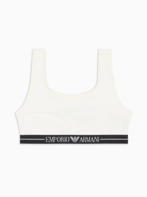 Bralette with elasticated logo underband. Fabric in certified organic cotton made from organically farmed natural fibres grown using techniques that meet strict social and environmental criteria. Bralette Rounded neckline Logo band Product Code: EW000420AF10881O8002
