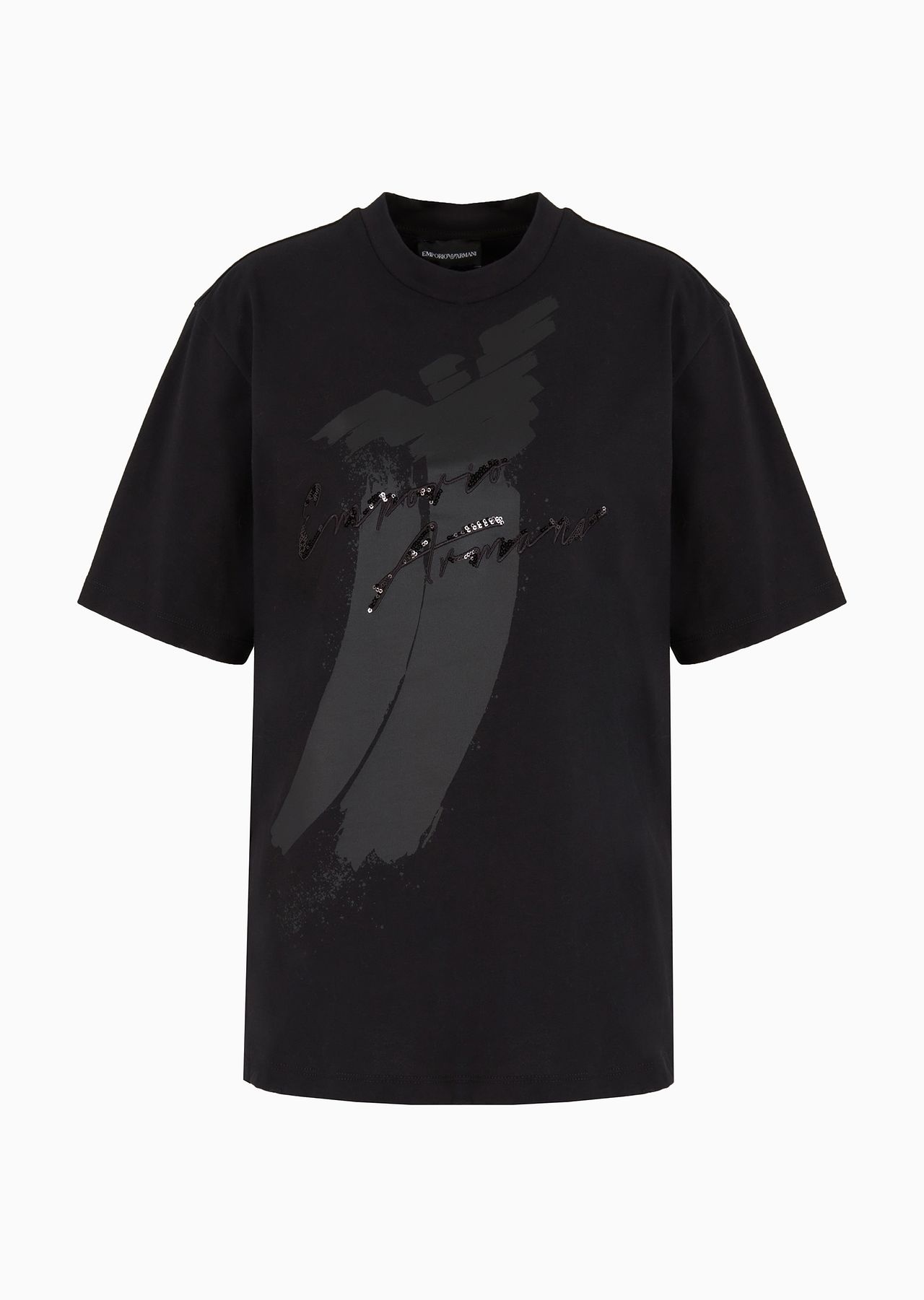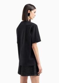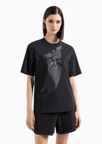 Crew-neck T-shirt made from organic cotton heavyweight jersey, a fabric made with natural fibres from organic farming. The front print with a monochromatic eagle is embellished and overlaid by embroidery with an embossed signature logo, decorated with matching sequins. Product Code: 6D2T7G2J4EZ10999 Details Composition 100% Cotton The fabric is made of 100% organic cotton Heavyweight jersey Crew neck Logo print Sequin logo embroidery Fitting The model is 178 cm tall and is wearing size 40/S (Italian Size)