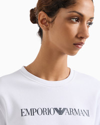 Women’s sweatshirt in organic cotton jersey, a fabric made from natural fibres from organic agriculture, with a logo print on the front that adds distinction to the style. The piece belongs to the Essentials selection, the Emporio Armani capsule collection that makes a statement of enduring style: both elegant and practical, it works for numerous combinations on a wide array of occasions. The colour palette includes the brand’s characteristic neutral shades, combined with a minimalist design to create a series of key pieces for the female wardrobe. Product Code: 8N2M9E2J49Z1F109 Details Composition 100% Cotton Organic jersey Crew neck Long sleeves Logo print Fitting The model is 178 cm tall and is wearing size 40/S (Italian Size)