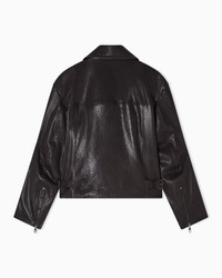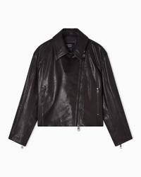 Oversized biker jacket with a classic off-centre diagonal zip fastening. The piece is made of washed vegetable-tanned nappa lambskin and is embellished with perforated inserts on the sleeves and a tumbled finish that gives it a refined vintage look. Slight nuances in colour or inconsistencies are features of the item, making each piece unique. The garment is part of the Icon capsule collection. Material: 100% lamb leather from responsible tanneries Vegetable-tanned nappa leather Oversized fit Classic collar Diagonal zip Side pockets with zip Long sleeves Perforated inserts on the sleeves Zip cuffs Leather straps with a buckle on the sides Lightly padded quilted serge lining Product Code: EW004111AF22278U8137