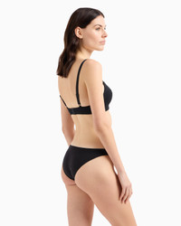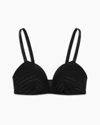 Bonded mesh padded triangle bra with adjustable shoulder straps with all-over jacquard logo lettering. The main fabric made from certified recycled nylon, supporting circular production with a reduced environmental impact. A style designed to be worn every day, allowing natural support, complete freedom of movement while remaining invisible under dresses. Product Code: 1639533F204100020 Details Composition 88% Polyamide 12% Elastane The fabric is made of 88% recycled polyamide Jacquard logo lettering Padded triangle Adjustable shoulder straps Closure hooks Fitting The model is 178 cm tall and is wearing size 40/S (Italian Size)
