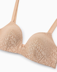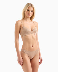 Padded mesh triangle bra with adjustable shoulder straps, with all-over jacquard logo lettering. The main fabric made from certified recycled nylon, supporting circular production with a reduced environmental impact. Jacquard logo lettering Padded triangle Adjustable shoulder straps Closure hooks Product Code: EW000444AF10880F6016