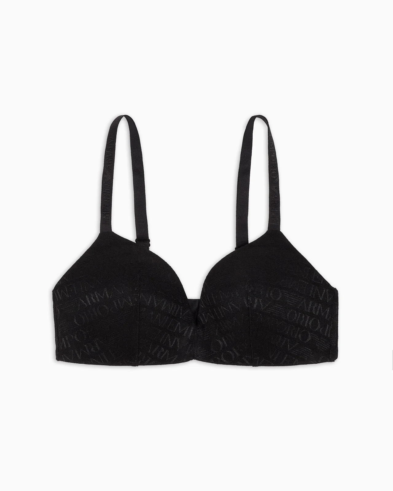 Padded mesh triangle bra with adjustable shoulder straps, with all-over jacquard logo lettering. The main fabric made from certified recycled nylon, supporting circular production with a reduced environmental impact. Jacquard logo lettering Padded triangle Adjustable shoulder straps Closure hooks Product Code: EW000444AF10880FC027