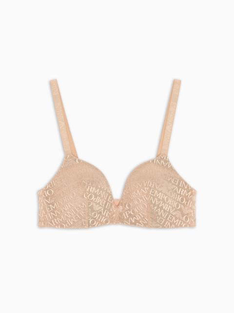 ASV PADDED TRIANGLE BRA IN RECYCLED MESH WITH ALL-OVER LOGO LETTERING