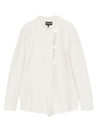 asymmetric-fastening jacket Highlights - Ivory - Button fastening - Round neck - Long sleeves Imported Composition Cotton 73%, Polyamide 17%, Elastane 10% SIZE & FIT Model measurements Height 5 ft 10 in(1.78 m) Bust/Chest 33.46 in(85 cm) Hips 36.22 in(92 cm) Waist 23.22 in(59 cm) Washing instructions Dry Clean Only