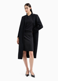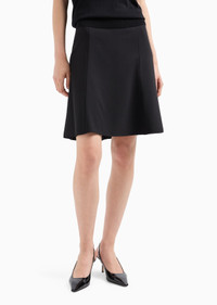 Flared skirt made of stretch Barathea wool, whose texture adds elegance and sophistication to this style that flows across the body. The piece belongs to the Essentials selection, the Emporio Armani capsule collection that makes a statement of enduring style: both elegant and practical, it works for numerous combinations on a wide array of occasions. The colour palette includes the brand’s characteristic neutral shades, combined with a minimalist design to create a series of key pieces for the female wardrobe. Product Code: 0NN3BT020021999 Details Composition 96% Virgin Wool 4% Elastane Barathea wool A-line cut Concealed zip fastening at the back Georgette lining Made in Italy Fitting The model is 178 cm tall and is wearing size 40/S (Italian Size)