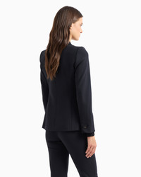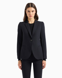 Single-breasted jacket made of stretch virgin wool Berethea fabric, with lapels on the neckline and closure with genuine horn buttons. Thanks to a classic, straight cut, this jacket can be worn everywhere, making it perfect on every occasion, from mornings at the office to after-work drinks. The piece belongs to the Essentials selection, the Emporio Armani capsule collection that makes a statement of enduring style: both elegant and practical, it works for numerous combinations on a wide array of occasions. The colour palette includes the brand’s characteristic neutral shades, combined with a minimalist design to create a series of key pieces for the female wardrobe. Barathea wool Lapel collar Horn button Long sleeves Cuffs with horn buttons Colour-matched lining Product Code: 0NG3BT02002926