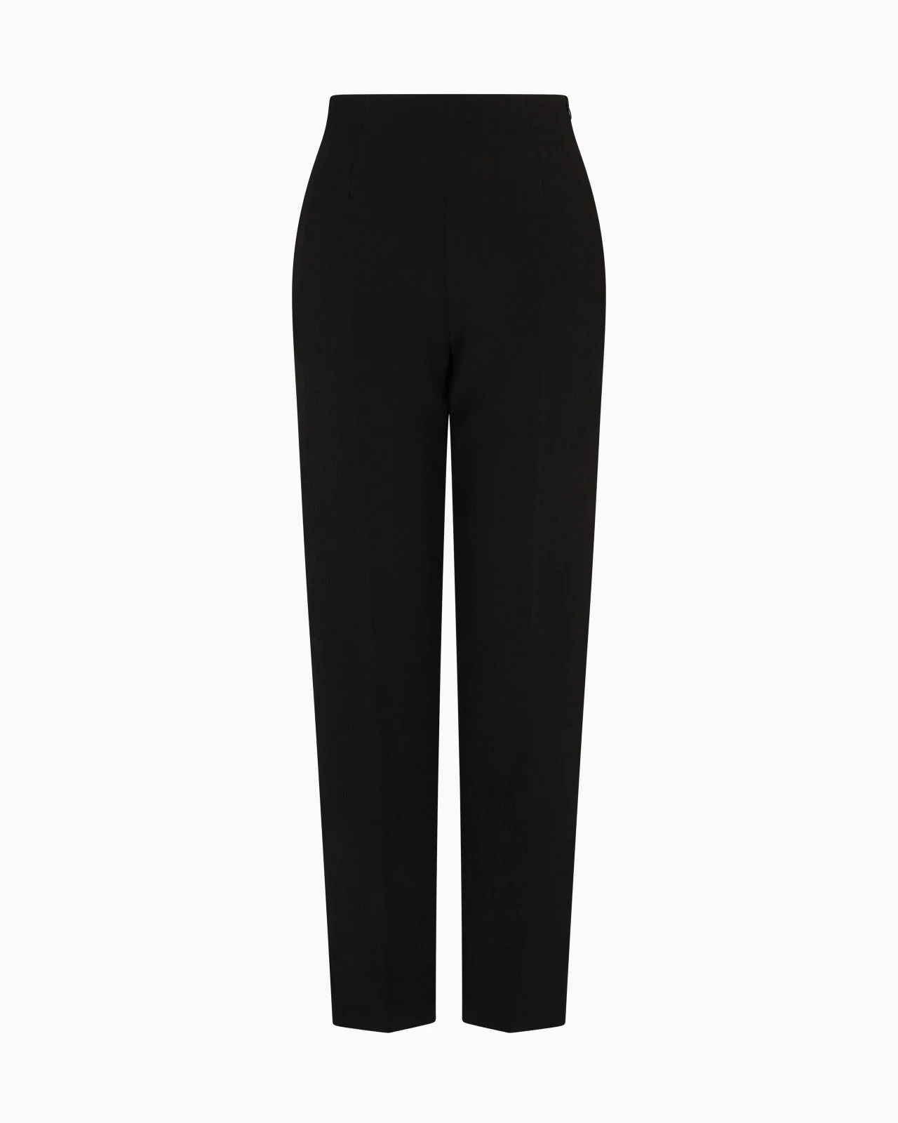 Linear, sophisticated-design trousers made from fluid crepe that will add a stylish touch to any outfit. The textured finish produced by the embossed surface creates a slight visual and tactile bark effect. Fluid crepe Bark-effect finish High waist Side zip closure Side pockets Product Code: EW001512AF14727UC001
