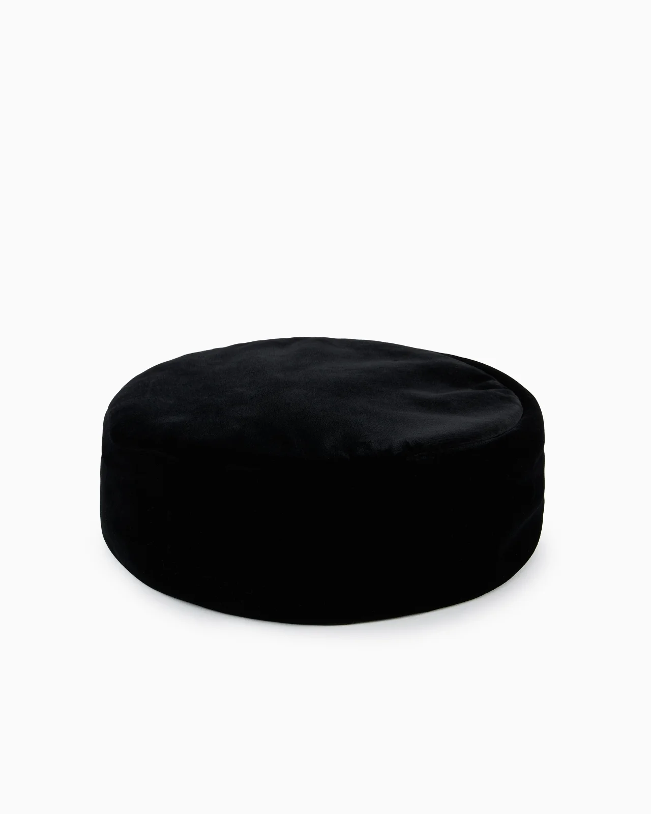 Skullcap-style hat made of a plush cupro-viscose blend velvet. Product Code: 6372634F558100020 Details Composition 65% Viscose 35% Cupro Velvet Tonal stitching Made in Italy