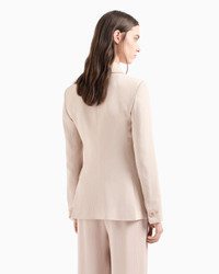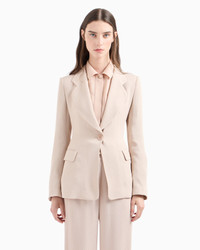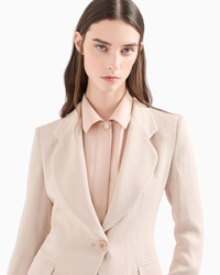 Blazer made of fluid, comfortable cannete cady. The fabric texture has the hallmark all-over, cannete-style ribbed weave. This piece is part of the Icon capsule collection: the essence of Emporio Armani, providing a modern interpretation of the brand’s DNA by updating the iconic shapes and volumes of its past, aimed at affirming a classic, evergreen allure. Product Code: EW000178TE105211U4134 Details Composition 54% Viscose 46% Acetate Cannete cady Lapel collar One-button closure Long sleeves Single-buttoned cuffs Satin lining Fitting The model is 178 cm tall and is wearing size 40/S (Italian Size)
