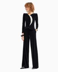Jacket with an irregular cross-over neckline, made of soft chenille jersey and featuring a front embellishment with a contrasting silk organza crescent moon. The item belongs to the exclusive Moon Capsule collection in which rhinestones and sparkling details recreate lunar and star elements on deep, dark backgrounds, embellishing the pieces in the selection with touches of brilliance. Elongated silhouettes glide through the moonlight in mysterious, nocturnal settings. Milky accents, similar to a starry sky, light up dark velvets, while the sparkle of sequins makes dresses shine and elevates tops, giving them a feminine, elegant and dreamy allure. Product Code: 6D2G8H2JW4Z10999 Details Composition 90% Polyester 10% Elastane Chenille jersey Irregular neckline Long sleeves Silk organza crescent moon Front concealed zip and press-stud closure Peplum at the hem Fitting The model is 178 cm tall and is wearing size 40/S (Italian Size)