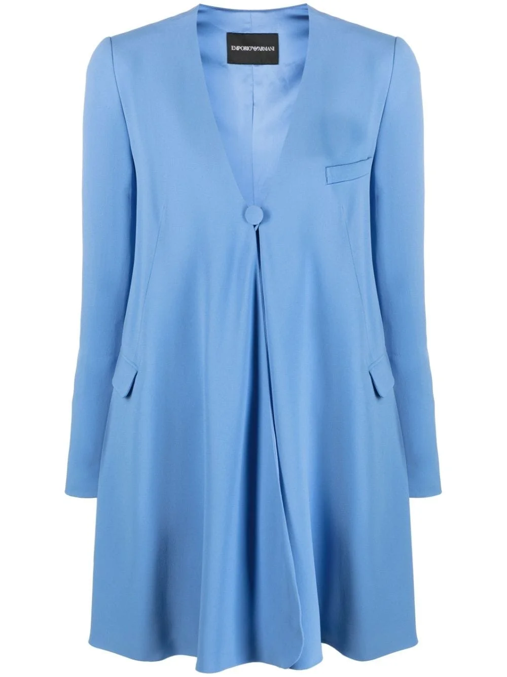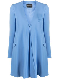single-breasted oversized blazer Highlights - Cyan blue - V-neck - Front button fastening - Jetted chest pocket - Two front flap pockets - Long sleeves - Straight hem Imported Composition Outer: Viscose 50%, Acetate 47%, Elastane 3% Lining: Polyester 100% SIZE & FIT Model measurements Height 5 ft 10 in(1.77 m) Bust/Chest 32.67 in(83 cm) Hips 35.43 in(90 cm) Waist 23.62 in(60 cm) FittingInformation Designed to be unstructured, offering a loose fit throughout The vented hem offers movement at the rear This piece fits true to size – take your usual size