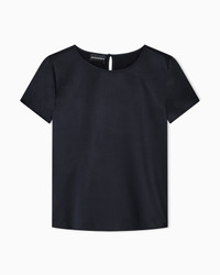 Women’s short-sleeved blouse made of exquisite silk satin with a natural sheen that adds charm to even the most basic outfits. Rounded neckline with arched back button closure. The piece belongs to the Essentials selection, the Emporio Armani capsule collection that makes a statement of enduring style: both elegant and practical, it works for numerous combinations on a wide array of occasions. The colour palette includes the brand’s characteristic neutral shades, combined with a minimalist design to create a series of key pieces for the female wardrobe. Product Code: 8N2K152NXXZ10926 Details Composition 94% Silk 6% Elastane Silk satin Rounded neckline Short sleeves Back pointed closure with button Fitting The model is 178 cm tall and is wearing size 40/S (Italian Size)
