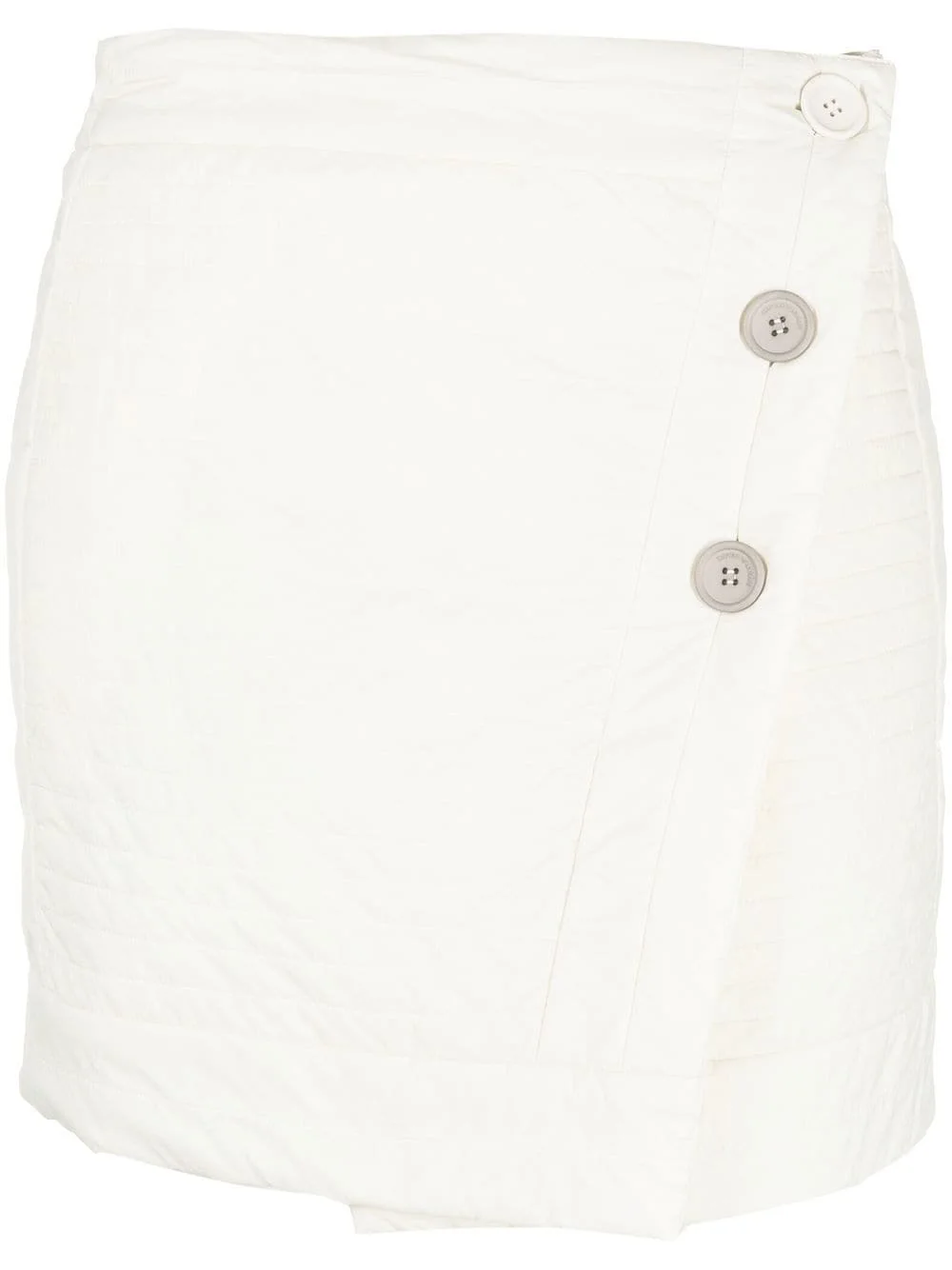 button-front quilted skirt off-white quilted side button fastening high waist wrap design Made in Italy Composition Outer: Polyamide 100% Lining: Polyester 100%, Polyamide 100% SIZE & FIT Model measurements Height 5 ft 9 in(1.76 m) Bust/Chest 33.07 in(84 cm) Hips 34.64 in(88 cm) Waist 25.59 in(65 cm) FittingInformation This piece fits true to size. We recommend you get your regular size Cut for a slim fit Made with a lightweight non-stretch fabric Washing instructions Dry Clean Only