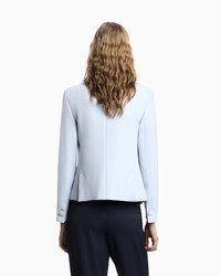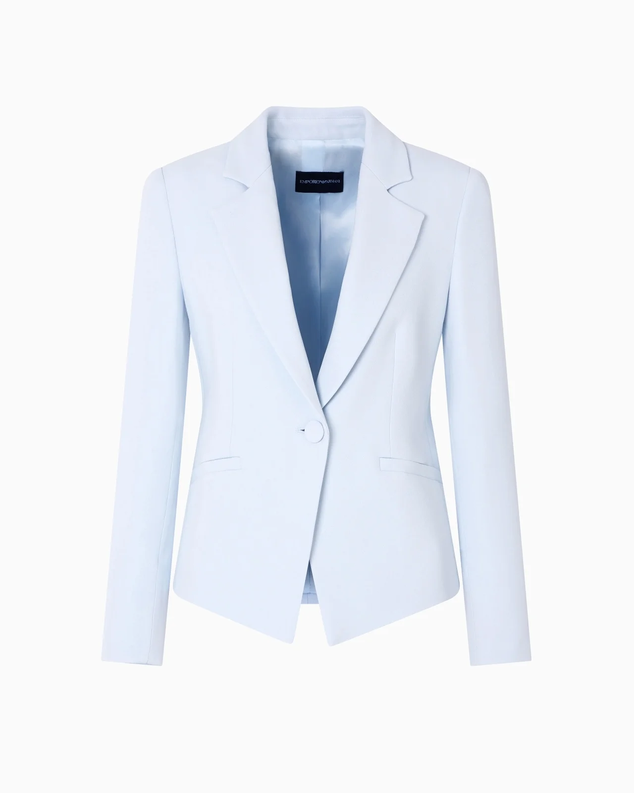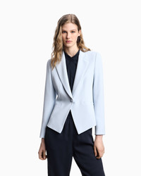This cady crepe women’s jacket is the full embodiment of Emporio Armani style. Graceful lapels and a flared cut give it a refined, extremely chic look. Satin details on the lining, cuffs and back slits provide a natural lustrous allure to the entire garment. Cady crepe Single-breasted Lapel collar Closure with covered dome button Long sleeves Cuffs with covered dome buttons Side welt pockets Two back vents Matching satin interior trim Stretch-serge lining Product Code: 0NG3CT02013U9309