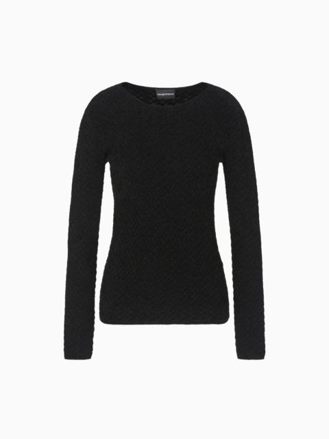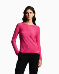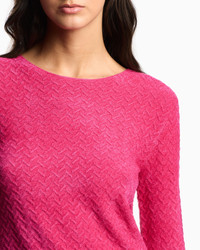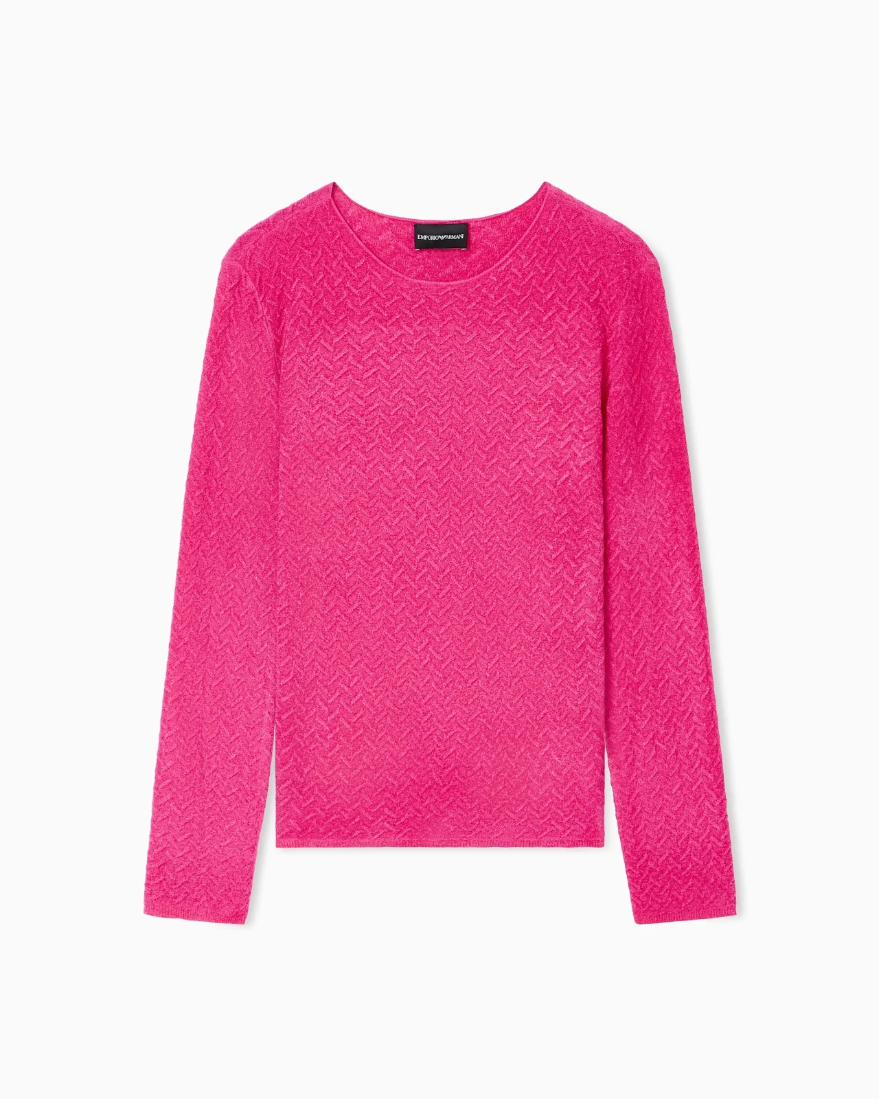 Long-sleeved crew-neck jumper made of stretch chenille with a distinctive embossed irregular chevron motif that adds character and a three-dimensional effect. Chenille Irregular chevron motif Crew neck Long sleeves Product Code: EW001247AF18161U4165