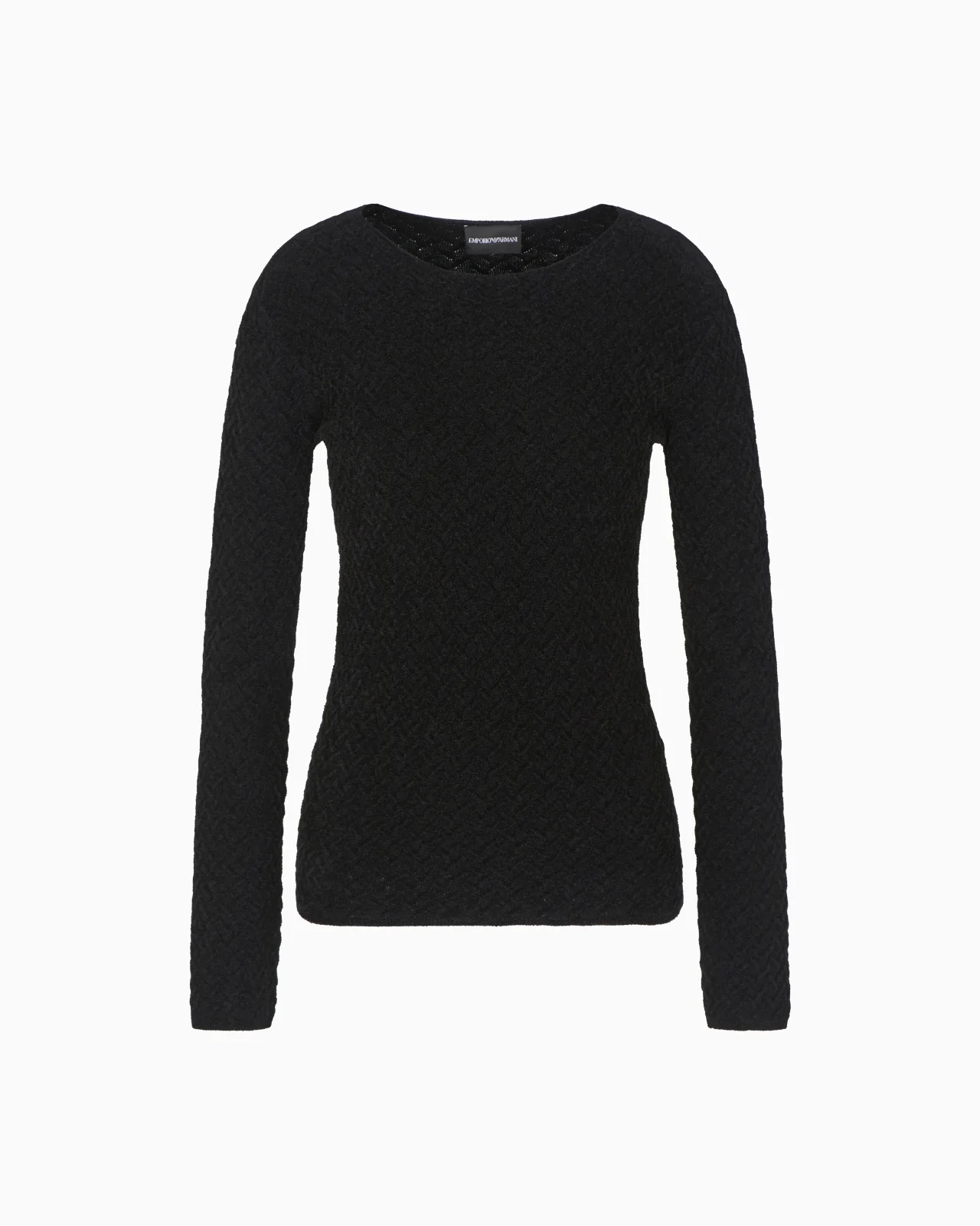 Long-sleeved crew-neck jumper made of stretch chenille with a distinctive embossed irregular chevron motif that adds character and a three-dimensional effect. Chenille Irregular chevron motif Crew neck Long sleeves Product Code: EW001247AF18161UC001