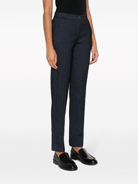 chevron-jacquard cropped trousers Highlights - Navy blue - Chevron print - Jacquard - High waist - Cropped leg - Concealed front fastening - Pressed crease - Straight leg - Straight hem Made in Italy Composition Lining: Viscose 57%, Polyamide 43% Outer: Polyamide 43%, Acrylic (Fiber) 29%, Wool 28% SIZE & FIT Model measurements Height 5 ft 11 in(1.8 m) Bust/Chest 30.7 in(78 cm) Hips 35.03 in(89 cm) Waist 24.4 in(62 cm) FittingInformation Designed for a slim fit, these trousers offer a close fit at the waist, allowing a comfortable close fit and some movement over the leg Made with a midweight knit, this piece offers some stretch This piece fits true to size – take your usual size