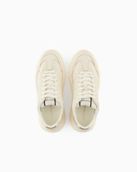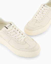 These modern, urban-inspired sneakers are perfect for showing off sporty-chic outfits or casual looks. The large soles have a knurled surface, while the leather uppers feature a metallic gold back. Product Code: X3X149XF6241N821 Details Composition 100% Bovine leather Brand logo Solid color Laces Round toeline Flat Rubber sole