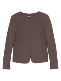 chevron-pattern zip-front jacket Highlights - Brown - Chevron pattern - Zip fastening - Long sleeves - Round neck Imported Composition Outer: Cotton 52%, Polyamide 45%, Elastane 3% Lining: Polyester 97%, Elastane 3% SIZE & FIT Model measurements Height 5 ft 10 in(1.78 m) Bust/Chest 33.46 in(85 cm) Hips 36.22 in(92 cm) Waist 23.22 in(59 cm) Washing instructions Machine Wash