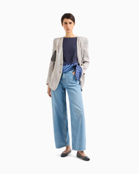 Pure cotton-jersey, crew-neck T-shirt. The piece is made recognisable by the satin detail with a foulard print that knots at the hem, elevating the style in its simplicity. Cotton jersey Crew neck Short sleeves Eagle logo on the chest Satin detail that can be knotted Product Code: EW001524AF12597FB119