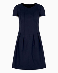 Round-neck dress made from a high-quality couture cotton blend. A garment that enhances the female shape naturally and elegantly, adding a touch of femininity and aplomb to outfits. The very compact fabric adds a touch of glamour to every occasion. The style is embellished with all-over vertical-stripe stitching, opening up into sophisticated godet pleats at the skirt. Rounded neckline Short sleeves Stitching detail Pleats at the waist Concealed back zip closure Unlined garment Product Code: EW000858TE10007UB115