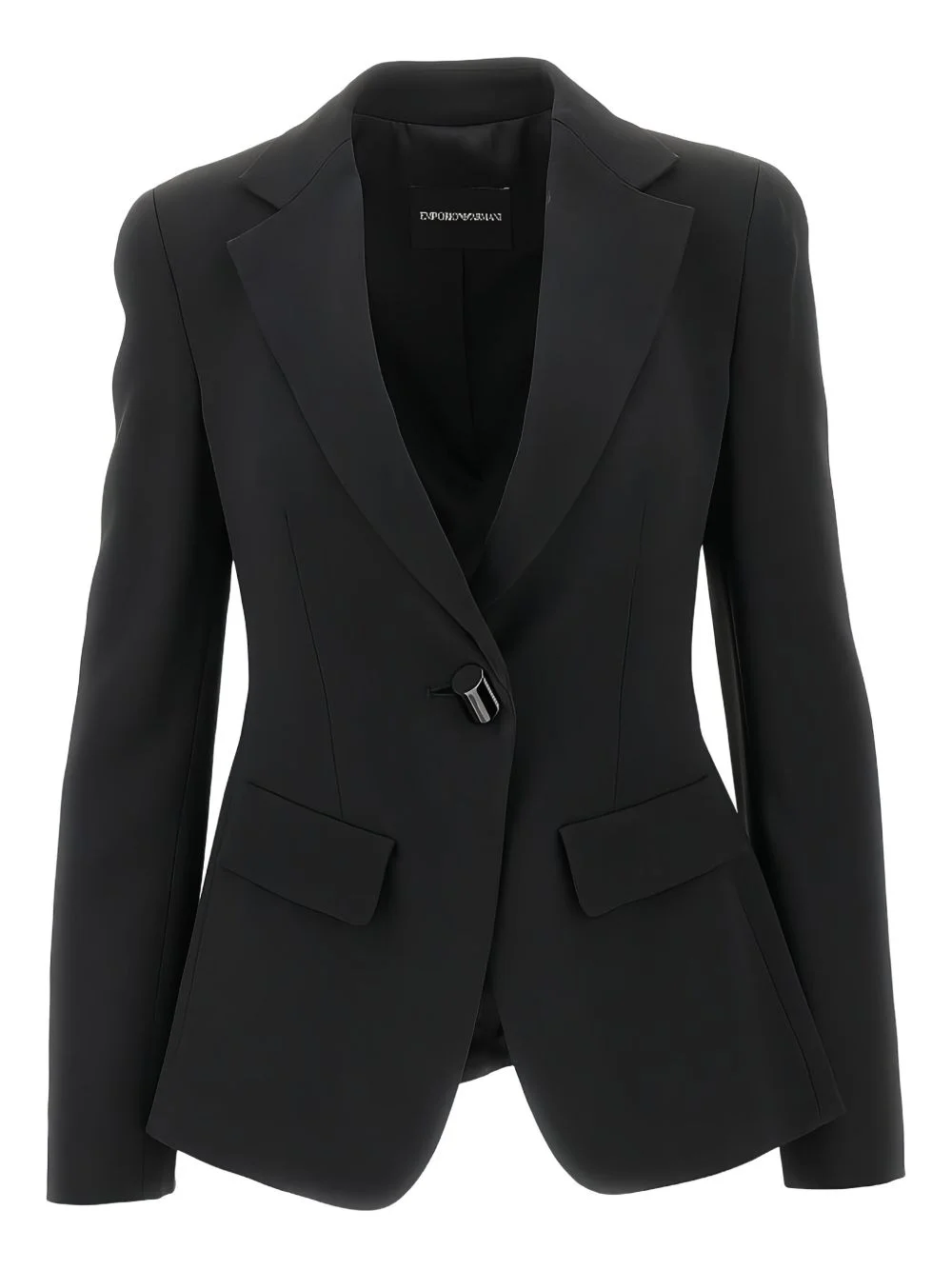 single-breasted blazer Highlights - Black - Button fastening - Notched lapels - Front flap pockets - Long sleeves Imported Composition Viscose 50%, Acetate 47%, Elastane 3% Washing instructions Read Manufacturer Guidelines