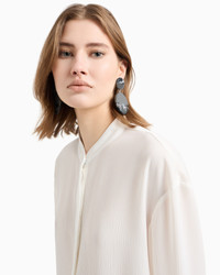 Shirt with a concealed fastening. It is made of crepon fabric, recognisable by its airy fluidity and an elegant crinkled pleated effect that adds a touch of texture. Crepon Concealed button closure Long sleeves Single-buttoned cuffs Satin trim inner edges Unlined garment Product Code: EW000863AF12521U0006