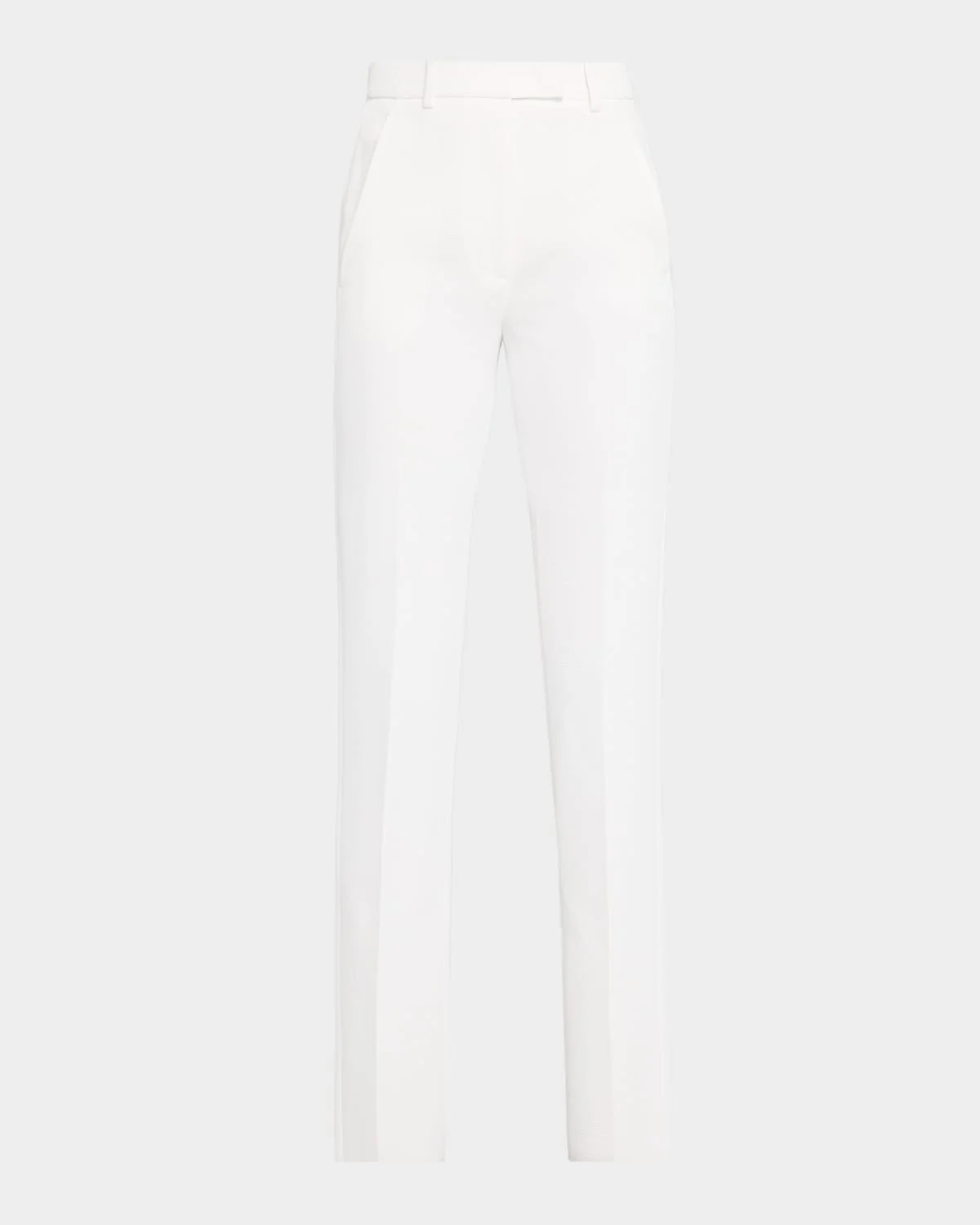 - Emporio Armani trousers designed in a sophisticated waffle weave for a dense honeycomb effect - Mid-rise sits high on the hips - Flat front - Side slant pockets - Back welt pocket - Cropped at the ankle - Slim, straight legs - Extended tab/zip fly; belt loops - Polyester - Dry clean - Imported