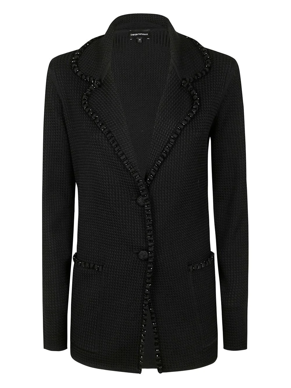 crystal-embellished blazer Highlights - Black - Front button fastening - Two front patch pockets - Long sleeves Imported Composition Viscose 100%