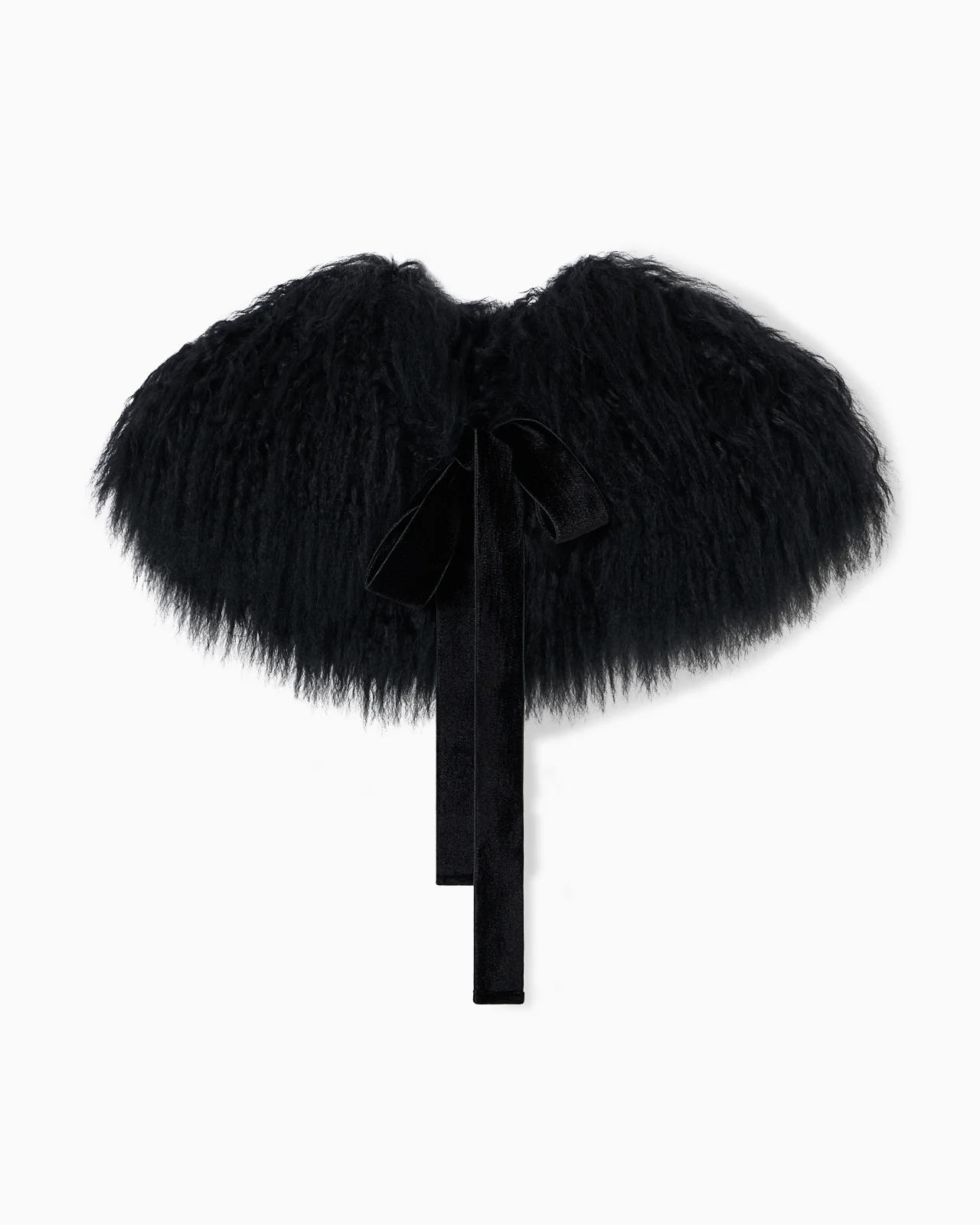 Collar with velvet self-tie strips, made of curly Mongolian lamb fur: a cosy, warm texture that wraps the silhouette in a snug, modern style. Mongolian fur Velvet self-tie strips Made in Italy Product Code: EW003753AF22314UC001