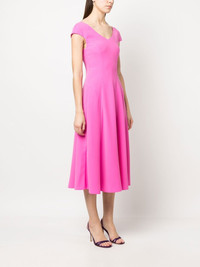 cut out-back midi dress pink fitted waistline short sleeves cut-out detailing V-neck knee-length flared skirt concealed rear zip fastening Imported Composition Outer: Polyester 100% Lining: Polyester 100% SIZE & FIT Model measurements Height 5 ft 11 in(1.8 m) Bust/Chest 31.49 in(80 cm) Hips 36.22 in(92 cm) Waist 25.59 in(65 cm) FittingInformation This piece fits true to size. We recommend you get your regular size Designed for a close fit at the bust and waist, but loose at the hip Made with a mid-weight fabric Washing instructions Dry Clean Only