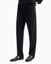 High-waisted trousers with darts that start from the top with an oval leg, made from technical cady, a flowing, lightweight fabric that gently skims over the skin, offering an impeccable look to any silhouette. With a casual yet refined appeal, these trousers are versatile enough to dress up a variety of occasions. Product Code: E3NP1B2NWAZ10926 Details Composition 100% Polyester Tech cady Wide belt Oval leg Pleats Satin interior waist Concealed zip fastening at the side Fitting The model is 178 cm tall and is wearing size 40/S (Italian Size)