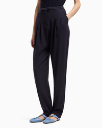 Trousers made of flowing, lightweight technical cady that gently brushes against the skin to ensure a flawless look on any silhouette. Waist with pleated detail and numerous darts that accentuate the flare of the leg and blend with the fluidity of the fabric to give the piece a graceful, elegant allure. Tech cady Waist with satin interior Pleat details Front pleats Zip and hook closure Back welt pocket Product Code: EW000834AF10206UB115
