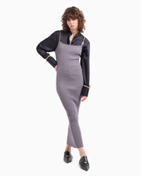 Rib-knit fitted long dress. The texture enhances the style’s femininity with a comfortable, form-fitting silhouette. The style has attached thin shoulder straps and a gold ring detail that adds a touch of brightness. The style is part of this season’s new Dawn to Dusk capsule collection, a selection of wardrobe essentials in a colour palette that takes inspiration from the golden light of dawn and the subtle shadows of sunset, creating a mix of warm and sophisticated tones accompanied by darker touches of shade.. A line designed to create a versatile wardrobe with pieces that lend themselves to being worn together to create layered looks, or matched to produce different creations that accompany you from morning to night. Length: 120 cm Form-fitting cut Rib knit Rounded neckline Thin shoulder straps Gold rings detail Product Code: EW001827AF15581UA064