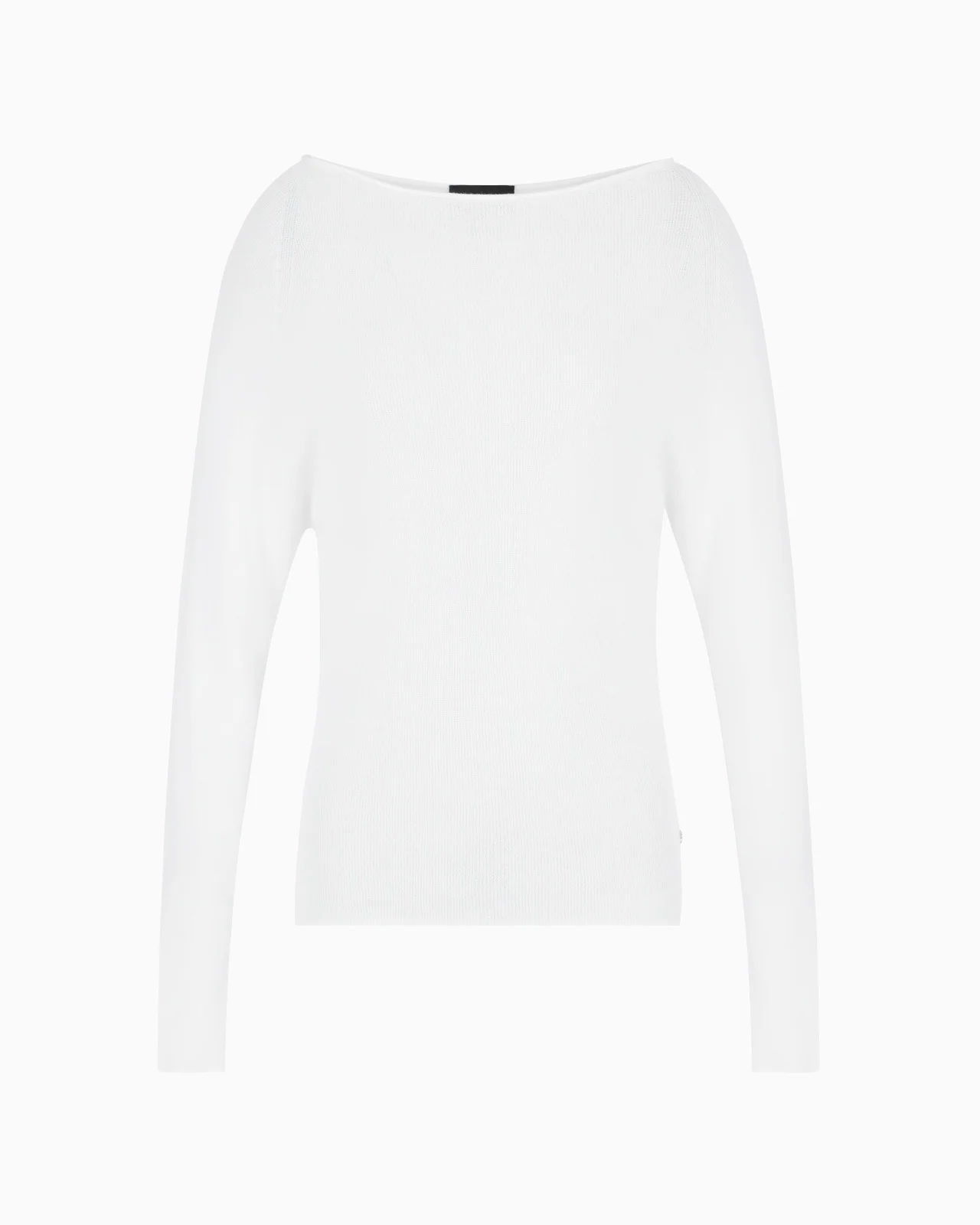 Boat-neck jumper made of a pure cotton knit with vertical ribs. The style is part of this season’s new Dawn to Dusk capsule collection, a selection of wardrobe essentials in a colour palette that takes inspiration from the golden light of dawn and the subtle shadows of sunset, creating a mix of warm and sophisticated tones accompanied by darker touches of shade.. A line designed to create a versatile wardrobe with pieces that lend themselves to being worn together to create layered looks, or matched to produce different creations that accompany you from morning to night. Rib knit Boat neck Long sleeves Made in Italy Product Code: EW001761AF15568U0006