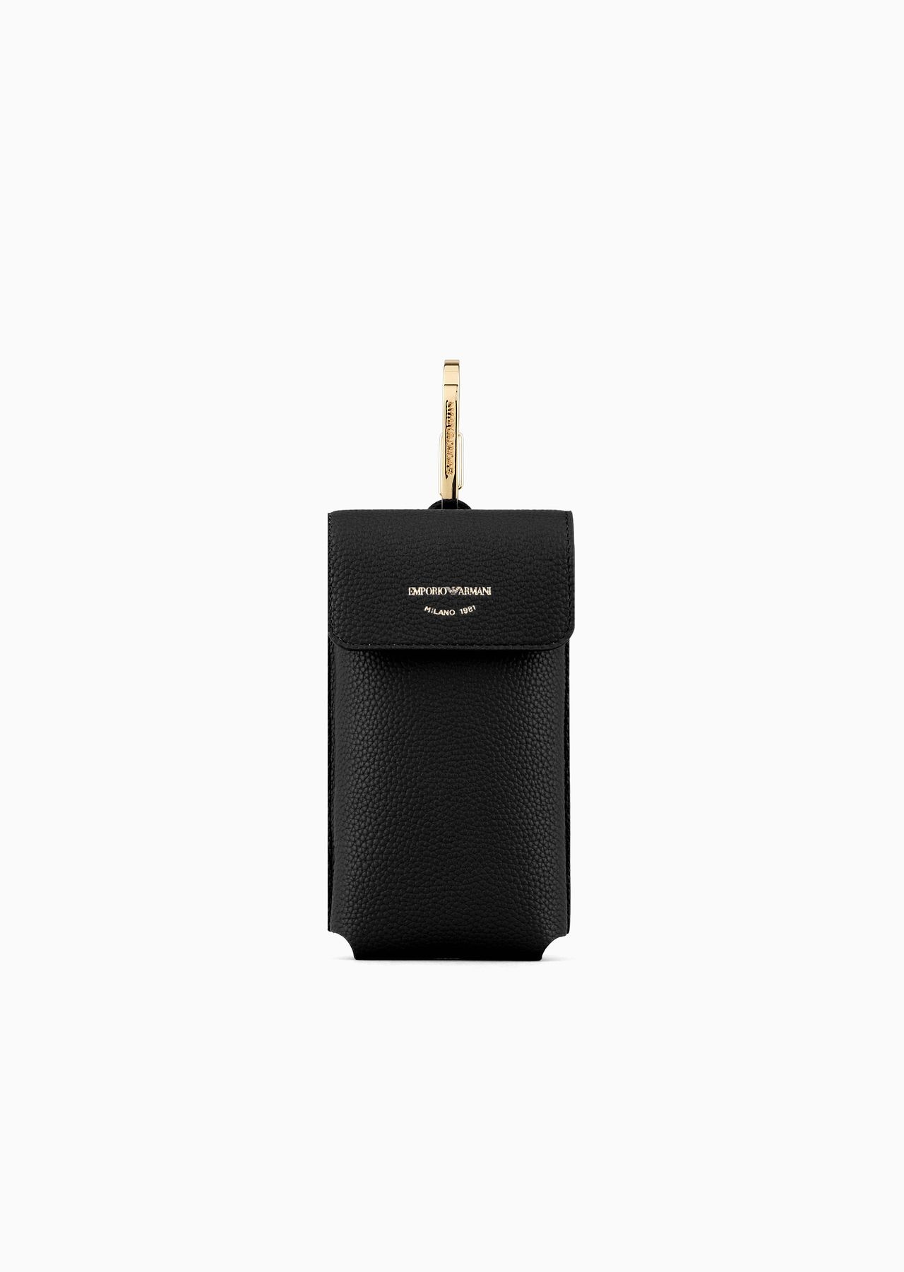 The deer print adds a touch of distinction to this season’s must-have accessory: a phone case with mobile phone compartment and practical logo carabiner so that it can be attached to different bags and belts. Silkscreen logo. Coordinate this exclusive accessory with your MyEA bag. Dimensions: 9 x 7 x 3 cm. Product Code: Y3H291YFW9B180001 Details Composition 100% Polyurethane Coated fabric Brand logo Snap buttons fastening