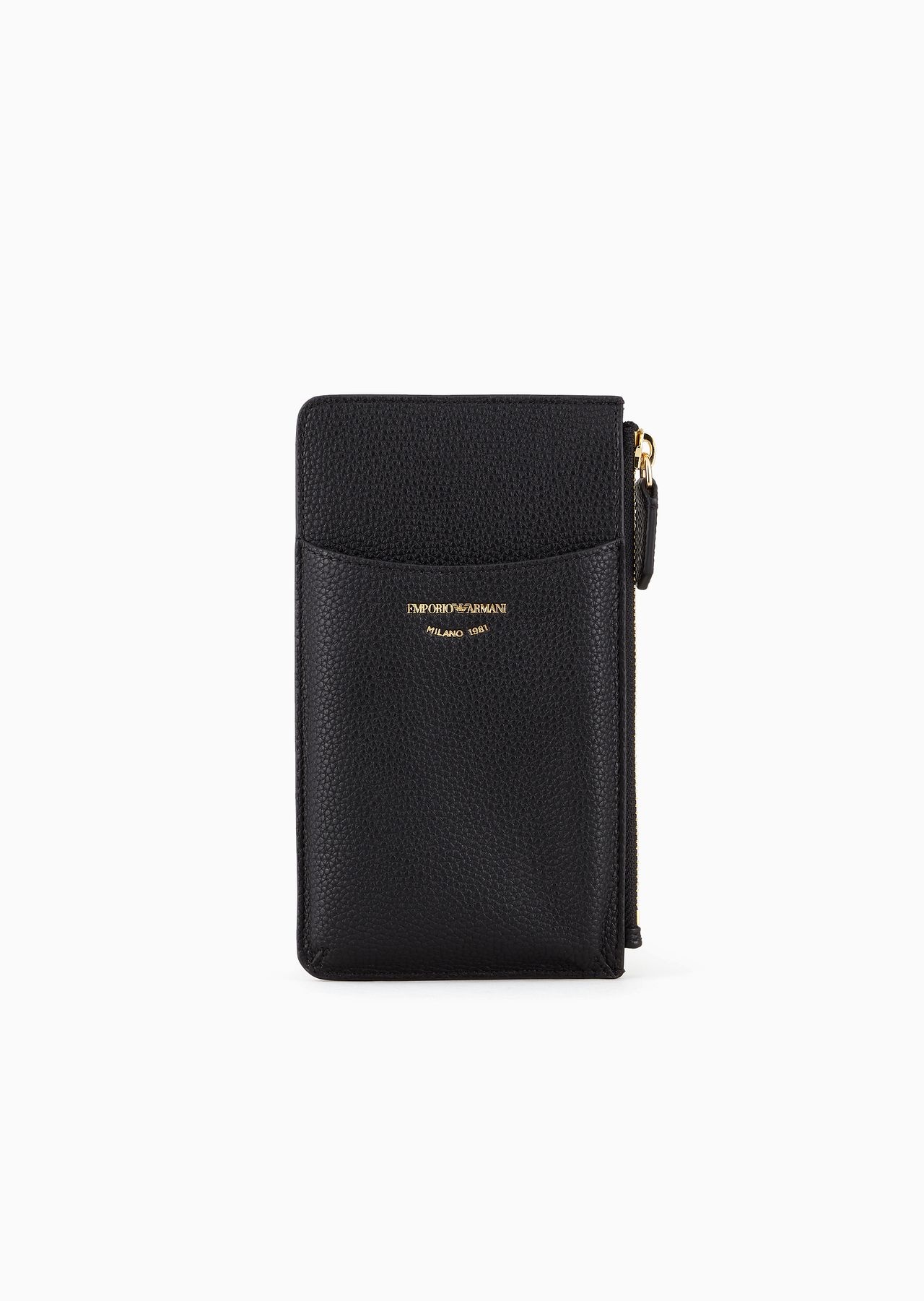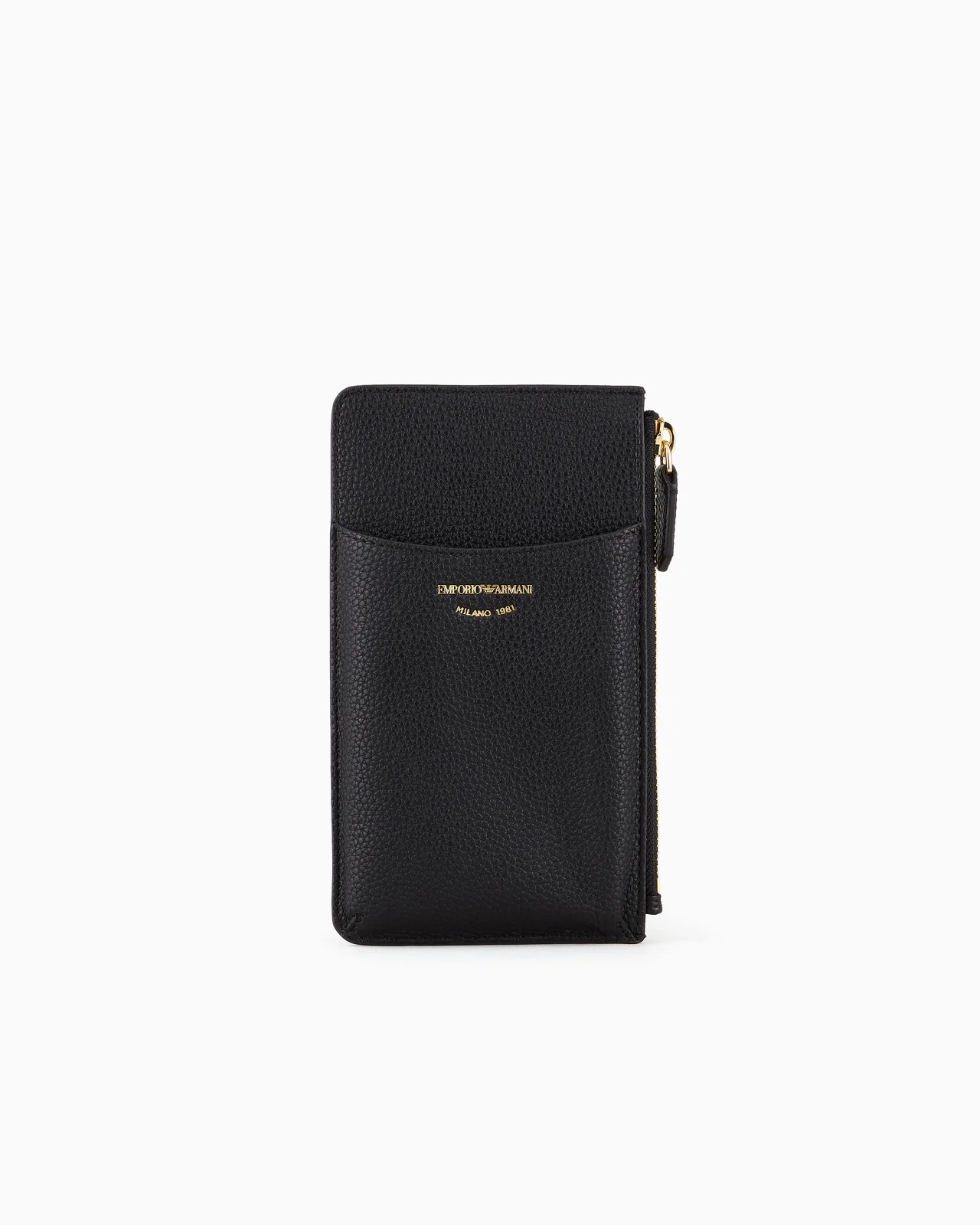 The season’s must-have accessory features a distinctive deer print: a phone case with mobile phone compartment, practical card holder slots and zipped coin purse. An accessory designed to keep everything close at hand. Silkscreen logo. Coordinate this exclusive accessory with your MyEA bag. Measurements: 11 x 18 x 2.5 cm. Product Code: Y3H244YFW9B180001 Details Composition 100% Polyester Coated fabric Brand logo Card slots Zipper closure