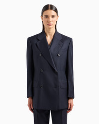 DOUBLE-BREASTED BLAZER IN WOOL SATIN WITH ALTERNATING STRIPES