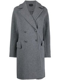 double-breasted coat grey virgin wool blend double-breasted button fastening wide notch lapels two side flap pockets knee-length Imported Composition Virgin Wool 85%, Cotton 15% SIZE & FIT Model measurements Height 5 ft 10 in(1.78 m) Bust/Chest 30.31 in(77 cm) Hips 36.61 in(93 cm) Waist 24.8 in(63 cm) FittingInformation This piece fits true to size. We recommend you get your regular size Cut for a loose fit Made with a mid-weight non-stretch fabric