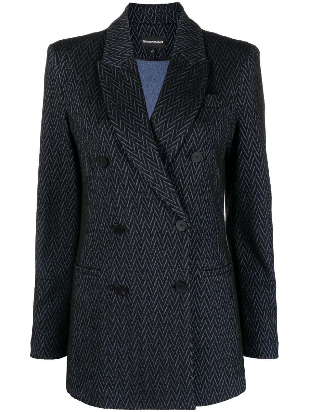 double-breasted herringbone blazer Highlights - Navy blue - Herringbone - Peak lapels - Double-breasted button fastening - Long sleeves - Buttoned cuffs - Chest welt pocket - Two front welt pockets - Straight hem Imported Composition Polyamide 43%, Wool 29%, Acrylic 28% SIZE & FIT Model measurements Height 5 ft 10 in(1.78 m) Bust/Chest 32.67 in(83 cm) Hips 35.43 in(90 cm) Waist 23.22 in(59 cm) FittingInformation Designed for a slim fit that sits just away from the body offering a close yet comfortable fit The internal shoulder pads offer a structured shape Made with a midweight knit, this piece offers some stretch This piece fits true to size – take your usual size