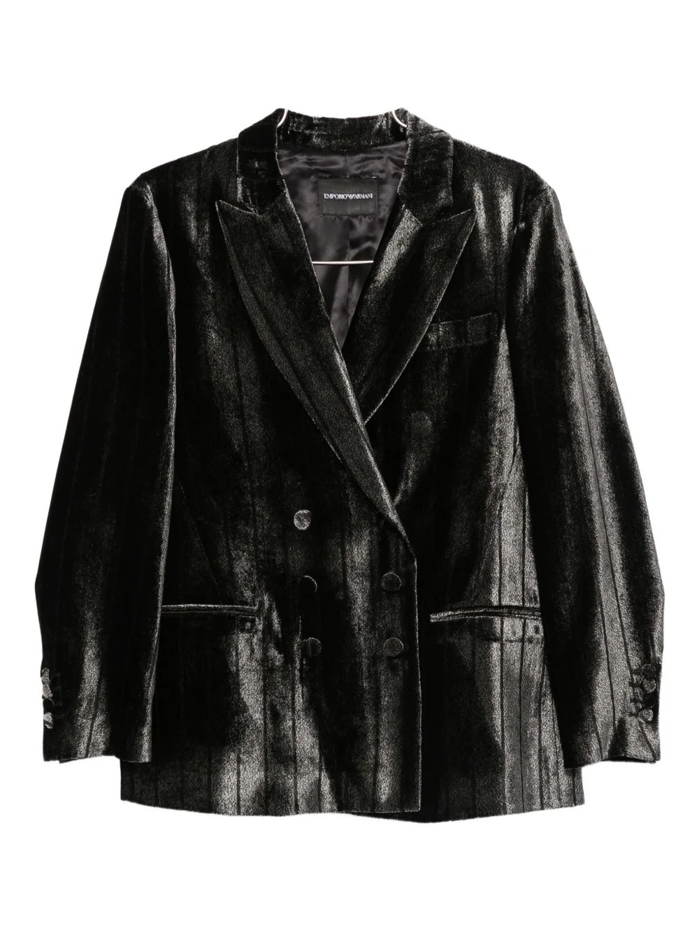 double-breasted jacket Highlights - Black - Pinstripe pattern - Double-breasted - Button fastening - Notched lapels - Flap pockets Imported Composition Viscose 80%, Silk 20% SIZE & FIT Model measurements Height 5 ft 10 in(1.79 m) Bust/Chest 33.46 in(85 cm) Hips 34.64 in(88 cm) Waist 23.62 in(60 cm) Washing instructions Read Manufacturer Guidelines