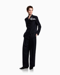 Double-breasted jacket made of fine fluid wool, a fabric that gives the garment a soft fit and an elegant drape. Its clean and sophisticated line makes it suitable for different occasions, from business casual to more formal events. Fluid wool Double-breasted Lapel neckline Front buttoning Long sleeves Buttoned cuffs Clutch pocket Side welt pockets with flap Flap lining Product Code: EW003981TE19442UB142