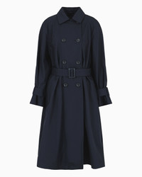Double-breasted trench coat made from a cotton-blend technical fabric, with a belt and flap at the back. A practical, modern style that is perfect as functional outerwear thanks to its water-repellent, breathable and super-comfortable properties, as affirmed by the patch sewn inside. Product Code: 3D2L632NHYZ10926 Details Composition 57% Polyester 43% Cotton Technical fabric Water-repellent Breathable Ultra comfort Double-breasted Classic collar Matching buttons Long sleeves Strap and buckle cuffs Belt with buckle at the waist Back storm flap Back centre vent Fitting The model is 178 cm tall and is wearing size 40/S (Italian Size)