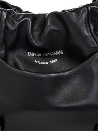 drawstring mini bag Highlights - Black - Drawstring closure - Two shoulder straps - Embossed logo detail - Gathered design Imported Composition Outer: Lamb Skin 100% SIZE & FIT Measurement DEPTH 2.75 in(7 cm) HEIGHT 5.11 in(13 cm) WIDTH 10.62 in(27 cm)